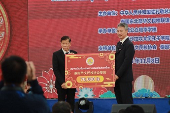黄迨光主席捐资致贺 鼎力支持泰国中部华文教育