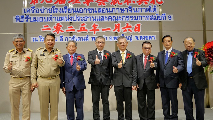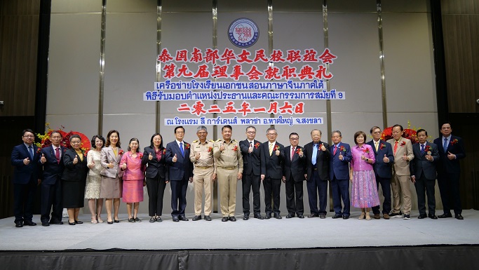 2025年1月6日,泰国华文民校协会主席、泰国西部华文民校联谊会主席、龙仔厝三才公学校董会主席黄迨光博士应邀莅泰国南部华文民校联谊会第九届理事会就职典礼现场。在热情洋溢的气氛中,黄迨光博士登台致辞,他首先代表泰国华文民校协会第十二届理事会对陈礼琛先生蝉联泰国南部华文民校联谊会第九届理事会主席表示热烈的祝贺! 他指出:泰国南部华文民校联谊会自成立以来,在历届主席和理事会的带领下,积极加强南部地区的华教事业并与其他六部(区)的兄弟单位团结协作,在申请教材、安排派遣教师、举办中文学术比赛和中华文化活动、组织教师培训交流等方面,做了大量艰苦细致的工作,为南部华文学校的发展提供了重要的服务和有利的保障,为促进全泰国华文教育事业的发展做出了一份重要的贡献。截止目前,南部地区十四所华校合计已有在读学生近一万三千余人,发展势头良好,办学质量越来越高,取得了许多成绩,这是大家有目共睹的,也令我本人感到非常欣慰。 他强调:百年大计,教育为本。明年是中泰建交50周年,我们华教工作者应该抓住这个契机,把泰国的华教事业推上一个新的高度。因此,我希望泰国南部华文民校联谊会新一届理事会继续秉持立会宗旨,适应华教大发展的需要,进一步加强会务和团队建设,加强与各部(区)兄弟单位的团结协作,争取社会各界的更多关注和支持,加大力度促进南部华校的发展。为了帮助和鼓励新一届泰国南部华文民校联谊会理事会在陈礼琛主席的领导下进一步推动泰国南部地区华教事业取得更大的成绩,黄迨光博士个人慷慨捐赠泰国南部华文民校联谊会理事会十万泰铢,并代表龙仔厝三才公学校董会捐赠泰国南部华文民校联谊会理事会两万泰铢。 最后黄迨光博士借此良机祝愿大家:新年快乐,万事如意,身体健康,工作顺利! 此次,陪同黄迨光博士出席活动的本协会首长尚有常务副主席陈汉展、张克勤、张进亮,中文秘书宋冬平以及杨燕菊女士等。